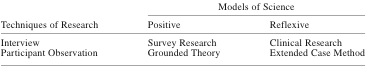 Kirk | This latest batch of readings was particularly helpful for thinking about methodological research practices likely to play out in my personal style of research. Re: about Burawoy’s extended case method and in particular his table on Positive vs. Reflexive scientific inquiry below: