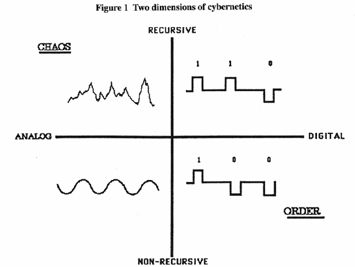 postmodern cybernetics, focused on analog decentralized systems, which started